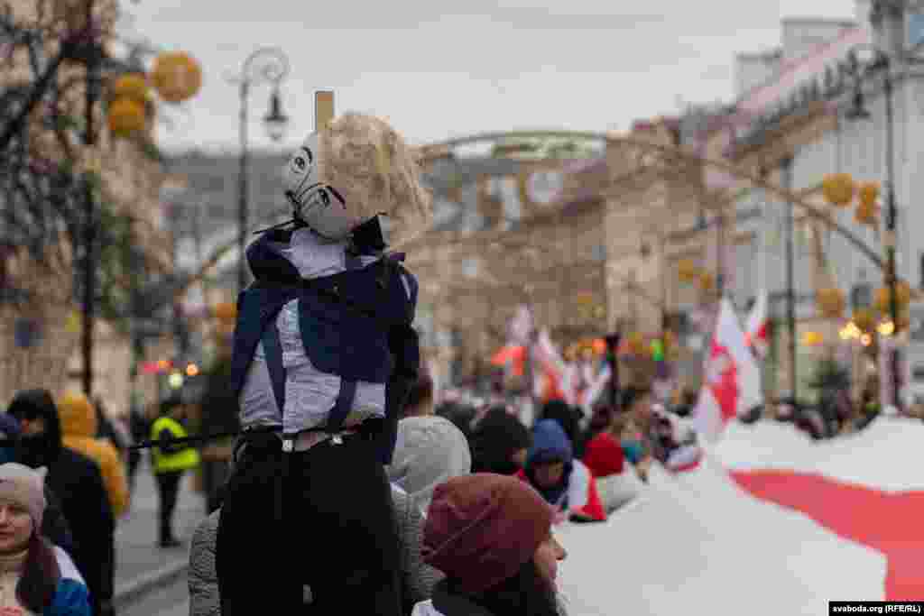 Падчас маршу гучалі воклічы «Жыве Беларусь», «Верым, можам, пераможам!» і «Свабоду палітвязьням!»