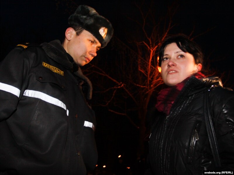 Галіна Сіўчык з сынам папрасілі міліцыянтаў пакласьці кветкі да помніка, як яна выказалася, «арыштаванага Янкі Купалы». Міліцыянты кветкі адкінулі ў бок, а жанчыне прыгразілі, што калі будзе выступаць, яе забяруць.