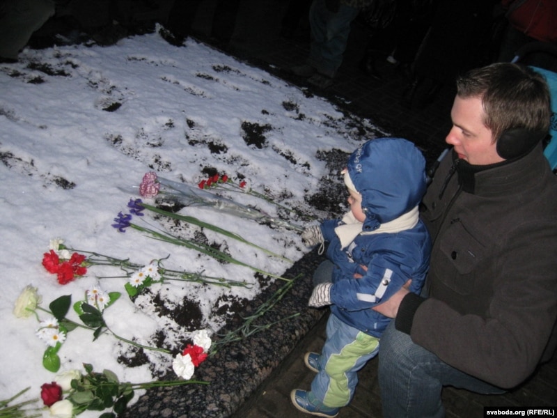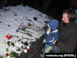 Янукевіч і Рымашэўскі ўсклалі кветкі да ўваходу ў сквэр. Людзі таксама зрабілі, як яны.