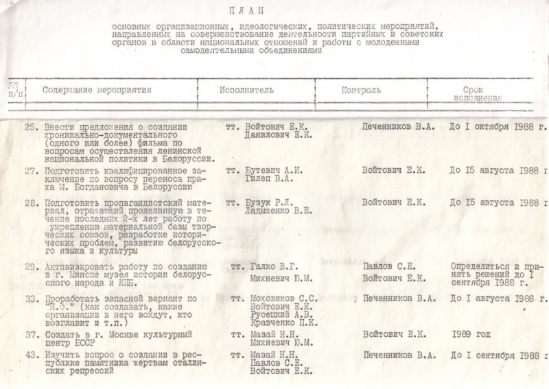 Першы аркуш, які я падняў з падлогі (Пазьняк і цяпер кажа пра неймавернае супадзеньне) – быў плян, які прадугледжваў стварэньне камуністамі “альтэрнатыўнага Народнага фронту” яшчэ да жніўня 1988 г. (камуністы імкнуліся згуляць “на апярэджаньне”, але, як і шмат што іншае, правалілі справу). Другім быў дакумэнт з асабістым подпісам Машэрава.