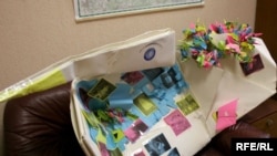Папяровыя жураўкі – гэта маленькія, складзеныя ў трохкутнічкі кавалкі каляровай паперы з партрэтамі палітвязьняў Зьмітра Дашкевіча і Аляксандра Казуліна. Нанізаўшы на ніткі, іх прычапілі да вялікага папяровага жорава. З такой перадачай праваабаронцы Алесь Бяляцкі і Валянцін Стэфановіч прыйшлі сёньня ў міністэрства ўнутраных спраў. Алесь Бяляцкі зьвярнуўся да міліцыянта на ўваходзе: