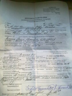 Пратакол затрыманьня складзены «па непасрэдна ўзьніклым падазрэньні ва ўчыненьні злачынства». Яго падпісаў старшы опэрупаўнаважаны Фрунзенскага раёну Менску А. Жыгалаў.