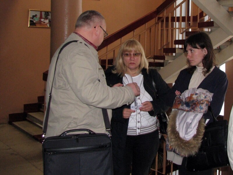 15.45 Дапытваюць сьведак з боку Паўла Станеўскага. Яны паўтараюць, што на патрабаваньне міліцыі паслухмяна паехалі ў РУУС, ня лаяліся і ня біліся. Там усіх дапыталі, узялі адбіткі пальцаў, а 4-х затрымалі.