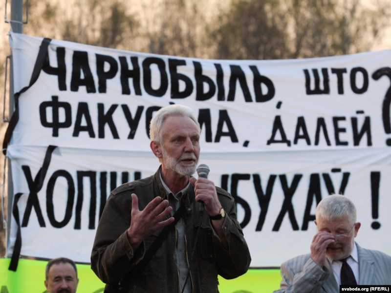 19:00 Выступіў старшыня Партыі БНФ Аляксей Янукевіч, які заявіў, што чарнобыльскімі наступствамі ў Беларусі займаецца шмат чыноўнікаў, але грамадзтва ня можа пракантраляваць іх дзейнасьць. Цяпер выступае жыхар Новалукомля ў адзеньні а-ля Ленін. Ён гаворыць, што прывід блукае па Беларусі, і гэта прывід новага Чарнобылю — Астравецкая АЭС.