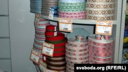 У фірмовай краме акцыянэрнага таварыства ў продажы стужкі, якую раздавалі ў Менску, не аказалася, аднак выбар падобных у іншай колеравай гаме шырокі. Як кажуць прадаўцы, набываюць гэтыя стужкі для аздобы дзіцячых сукенак і на сьвяты.