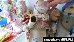 «Ім, калі нешта купляюць, падабаецца, што ёсьць на сувэнірах беларускія нацыянальныя элемэнты, — зазначае дзяўчына. — Вось тут жанчына час ад часу буслоў цацачных шые. Яны ў яе з вышыванкай. Дык вось гэты сымбаль беларускі расейцы любяць набываць. У мяне цацкі купляюць».