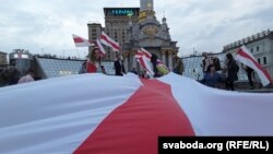 15-мэтровы бел-чырвона-белы сьцяг разгарнулі на Майдане ў Кіеве