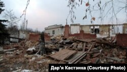 На выезьдзе з Арцёмаўску я бачу першыя ў гэтай паездцы сьляды баёў. Разбураны плот танкавай часткі: яе штурмавалі інсургенты, плот і пабудовы зьнесла стрэламі з танка, але ўкраінскія вайскоўцы адбіліся.