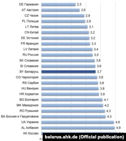 У той жа час колькасьць нямецкіх прадпрыемстваў, якія былі б гатовыя зноў выбраць Беларусь у якасьці месца ўкладаньня інвэстыцыяў, складае палову ад апытаных — 52%. Гэта адпавядае леташняму выніку, але істотна адстае ад паказьнікаў 2013–2014 гадоў, калі такое жаданьне вагалася ў межах 70%. Замест не заўсёды прадказальнай беларускай эканомікі расчараваныя бізнэсоўцы называлі, перш за ўсё, сваю радзіму Нямеччыну і суседнюю Аўстрыю. Сярод лідэраў рэйтынгу даверу — такія новыя сябры Эўразьвязу, як Чэхія, Польшча, Літва, Эстонія, а таксама ўсясьветны эканамічны гігант Кітай.