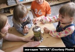 Эка-садок "ВЕТКА" нагадвае звычайны дзіцячы садок. Толькі дзеці сюды прыходзяць не на ўвесь дзень, а ня больш як на чатыры гадзіны. Адразу кідаецца ў вочы, што ў памяшканьні няма плястыкавых цацак — амаль усе драўляныя, шмат самаробных. Мэбля, іншыя рэчы — усё не зусім падобнае да звычайнай сучаснай абстаноўкі.