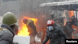 Зусім побач, на вуліцы Грушэўскага працягваецца супрацьстаяньне пратэстуючых супраць улады і сіл «Беркута».