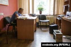 У офісе тым часам ідзе праца. Дзяўчаты наводзяць парадак, а юрыст прафсаюзу РЭП Юры Белякоў прымае ўжо чацьвёртага з пачатку дня наведніка: