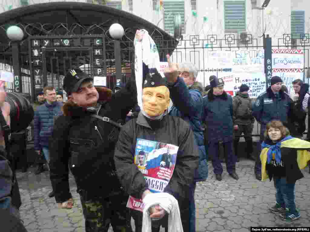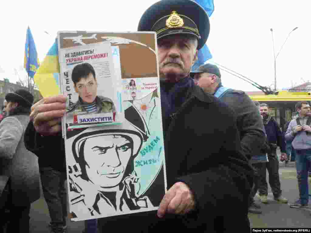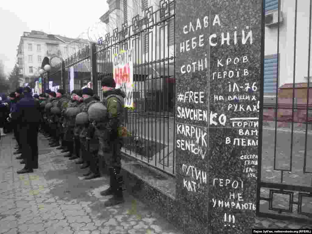 Падчас выступу прамоўцаў гучалі заклікі ўвесьці забарону на гандаль і разарваць дыпляматычныя адносіны з Расейскай Фэдэрацыяй, а таксама абвінавачваньні ў бок сёньняшняй украінскай улады, якая, на думку некаторых, робіць надта мала для выратаваньня Надзеі. Таксама ў бок будынку амбасады, якую ахоўвалі каля сотні паліцыянтаў, паляцела некалькі яек і бутэлькі зь ёдам.