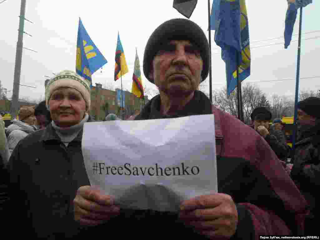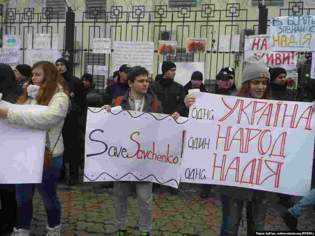 Сёньня ў рамках сусьветай акцыі падтрымкі Надзеі Саўчанкі ў Кіеве адбыўся мітынг пад сьценамі амбасады Расеі.