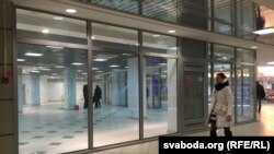 Гандлёвы цэнтар «Сталіца», які месьціцца ў так званым «падземным горадзе» на плошчы Незалежнасьці ў Менску, сустракае наведнікаў улёткамі і абвесткай: