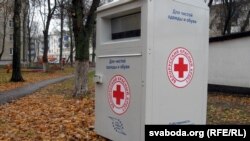 Валянтэры Чырвонага Крыжа правяралі ўжо першы кантэйнэр для збору рэчаў і вопраткі. У ім ляжалі мяккія дзіцячыя цацкі. Гараджане яшчэ не пасьпелі прызвычаіцца да новаўвядзеньня. Часьцей яны прыносяць адзеньне проста ў пакой міласэрнасьці пры таварыстве Чырвонага Крыжа, як гэта зрабіла сёньня сямейная пара гамельчукоў:
