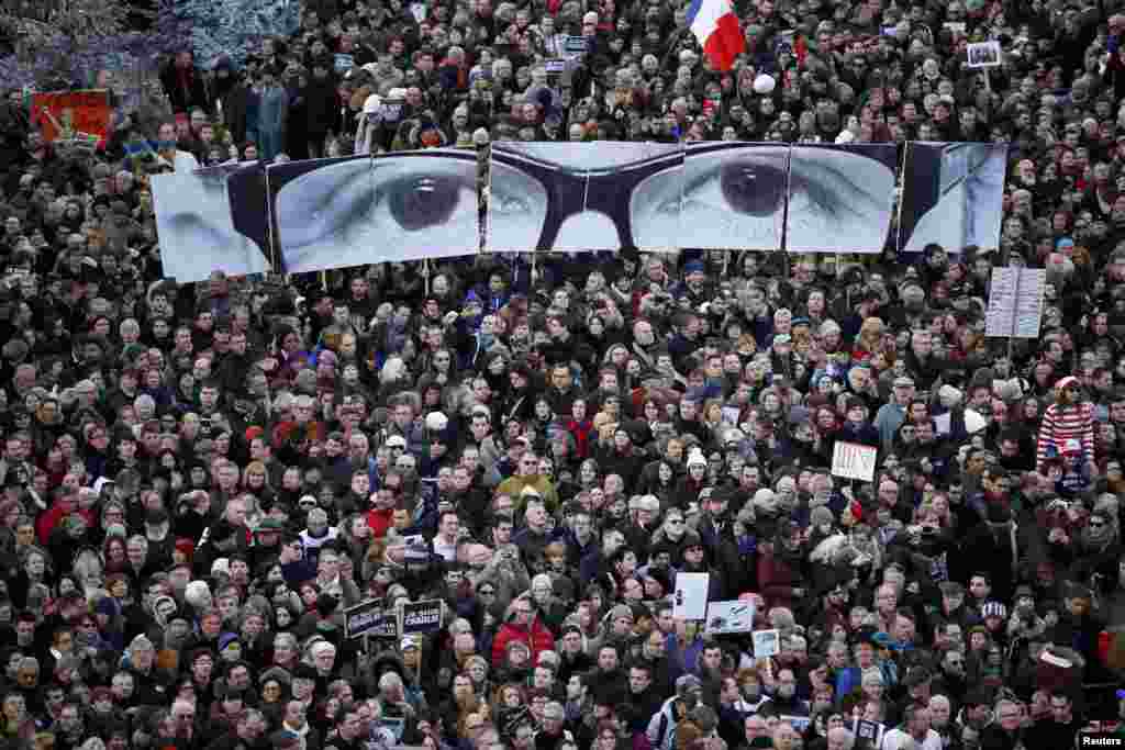 Велізарная колькасьць парыжанаў бярэ ўдзел у «маршы адзінства», які арганізаваны ў знак салідарнасьці і ў памяць ахвяр тэрактаў апошніх дзён.