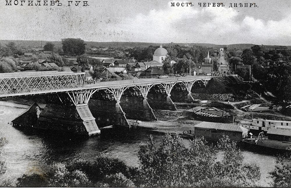 На старым фота зьлева, на беразе Дняпра, касьцёл Сьвятога Антонія Падуанскага і кляштар бэрнардынцаў. Царскія ўлады зачынілі гэты комплекс у 1865 годзе пасьля здушэньня паўстаньня Каліноўскага. Каталіцкую сьвятыню не наважыліся бурыць, але разьмясьцілі ў ёй судовы архіў. У сярэдзіне 1950 гадоў дужа пашкоджаны вайной будынак зьнесьлі.