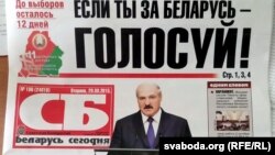 Але такая друкаваная прадукцыя з прыкметамі агітацыі выходзіла і далей: на перадавіцы «Советской Белоруссии» ад 29 верасьня 2015 году можна заўважыць нешта падобнае да агітацыі за аднаго кандыдата. Побач зь вялізным надпісам «Калі ты за Беларусь, ГАЛАСУЙ», стаіць фота Лукашэнкі — аднаго з кандыдатаў, за якога можна прагаласаваць 11 кастрычніка.