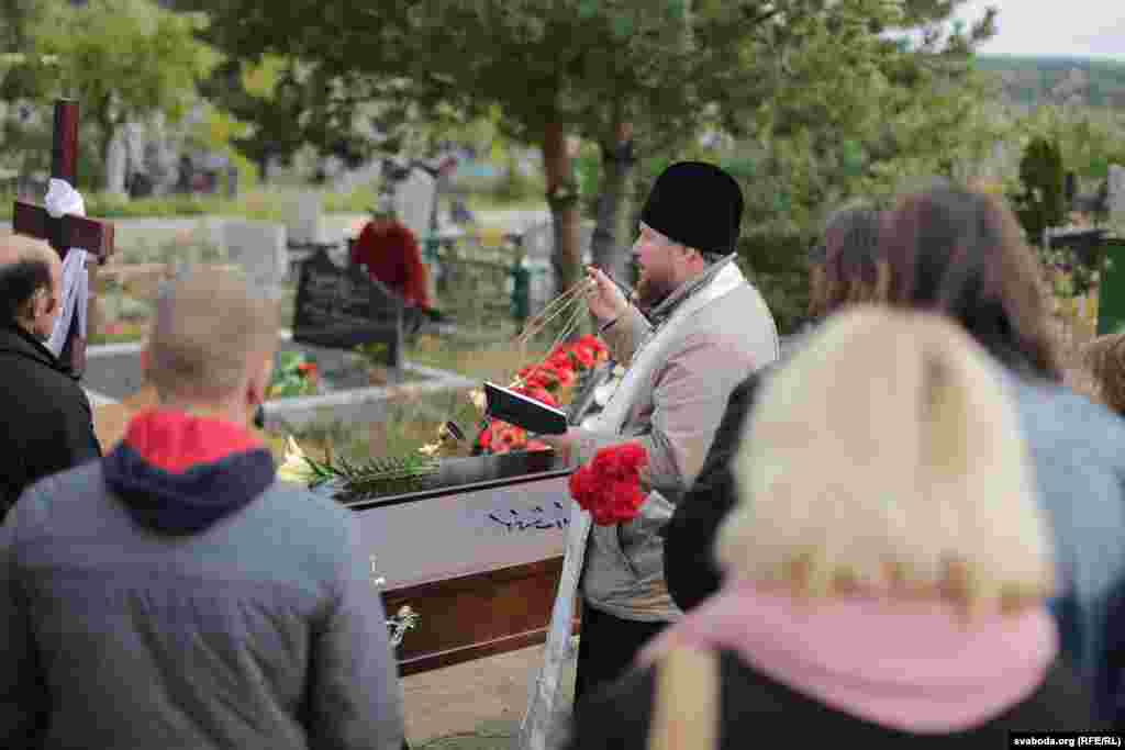 На сьціплую жалобную цырымонію прыйшлі нешматлікія сваякі, сябры, а таксама людзі, якія ў свой час былі голасам і тварам радыёстанцыі — Алег Хаменка, Зьміцер Вайцюшкевіч, Маша Яр, гукарэжысэры і тэхнікі.