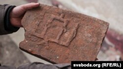 Спачатку ў шурфе пасярэдзіне замкавага двара археолягі знаходзілі фрагмэнты гатычнай цэглы з выпуклымі выявамі, нібы нейкіх гербаў. Такія не трапляліся з даваенных часоў — былі толькі з выявамі, выразанымі нажом.