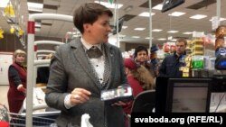 „Гэта такі піяр у межах выбарчай кампаніі“, — выказалася маладая пакупніца, якая не захацела фатаграфавацца. — Хоць, вядома, за 300 тысяч у тыдзень пражыць немагчыма».