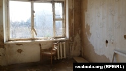 Цыратай закрытыя вокны і ў яшчэ адным доме паблізу, дзе таксама ёсьць вольныя кватэры. Яны меншыя — двухпакаёвыя. І выгодаў меней — ацяпленьне не цэнтральнае, а пячное. Аднак выглядаюць кватэры такімі ж закінутымі: печка даўно развалілася, падлога прагніла, дый уся кватэра — у гнятліва неахайным стане.