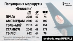 Прэс-служба авіякампаніі «Белавія» назвала Радыё Свабода найбольш папулярныя маршруты паводле вынікаў распродажу 28-29 лістапада.