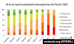 Сацыёлягі таксама сьведчаць, што расейцы перасталі лічыць адносіны сваёй краіны з Захадам добрымі.