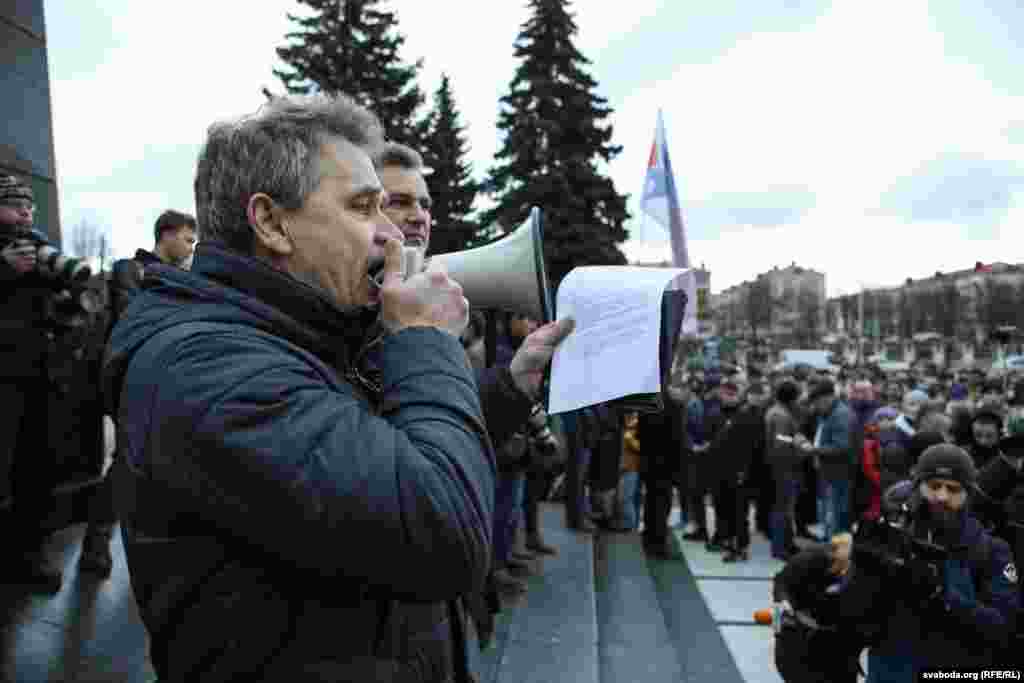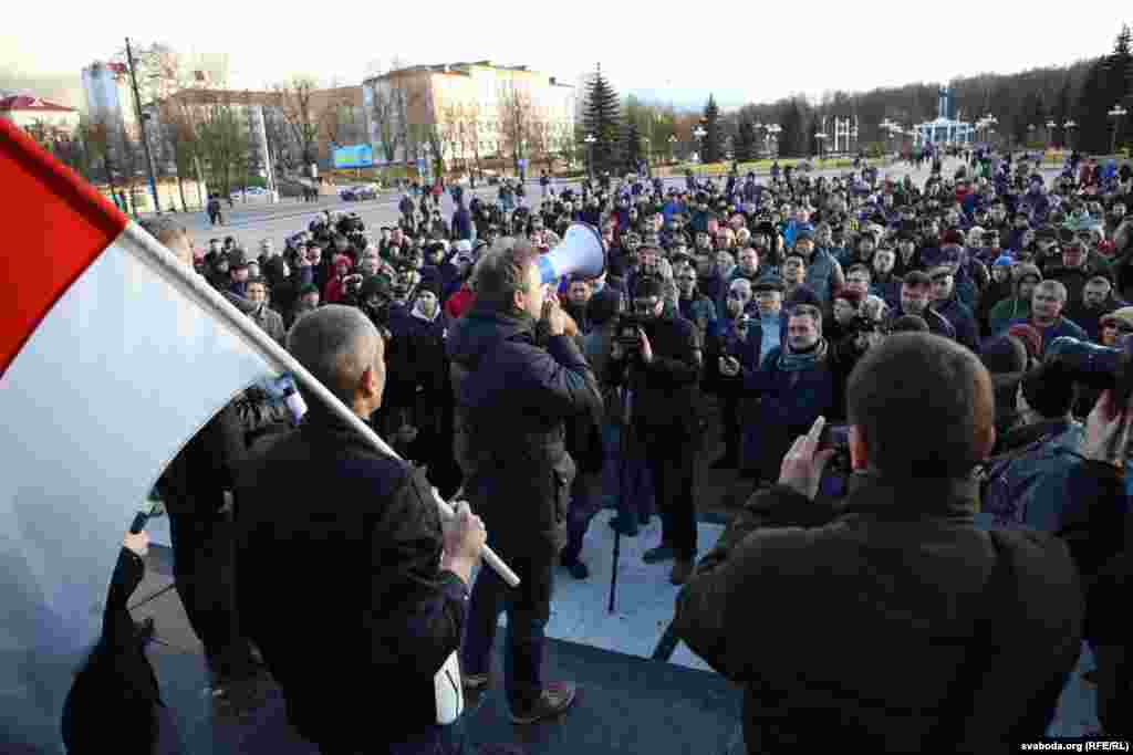 Акцыя пачалася на цэнтральнай плошчы, дзе выступілі Анатоль Лябедзька, Юрась Губарэвіч, Віталь Рымашэўскі і іншыя ўдзельнікі маршу.