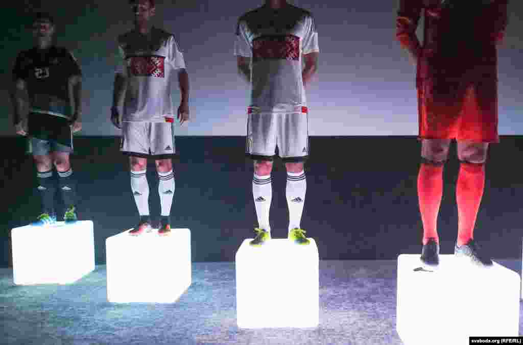 Новую форму нацыянальнай зборнай Беларусі па футболе прэзэнтавала сёньня асацыяцыя «Беларуская фэдэрацыя футболу». Пасярэдзіне белай майкі — шырокі нацыянальны ўзор.