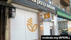 На вуліцы Рагачоўскай банкамат «Белаграпрамбанку» на трох мовах — беларускай, расейскай і ангельскай — папярэджваў, што не функцыянуе.