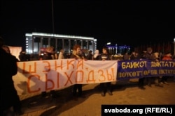 На Кастрычніцкую плошчу ў цэнтры Менску вечарам 11 кастрычніка выйшлі некалькі дзясяткаў грамадзкіх актывістаў.