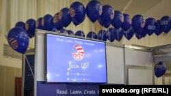 «У розныя гады Амбасада ЗША дэманстравала навюткія кніжныя выданьні, сучасныя інфармацыйныя тэхналёгіі, праводзіла віктарыны і сустрэчы з запрошанымі з ЗША выкладчыкамі, гасьцямі.