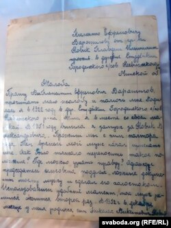 А вось паперка безь пячаткі. Пісьмовая просьба ад афіцэра НКВД. Гэтая абрэвіятура за гады толькі набрала яшчэ большай злавеснасьці. І за кожнай паперкай чыясьці крыўда ці драма. Ці, наадварот, радасьць.