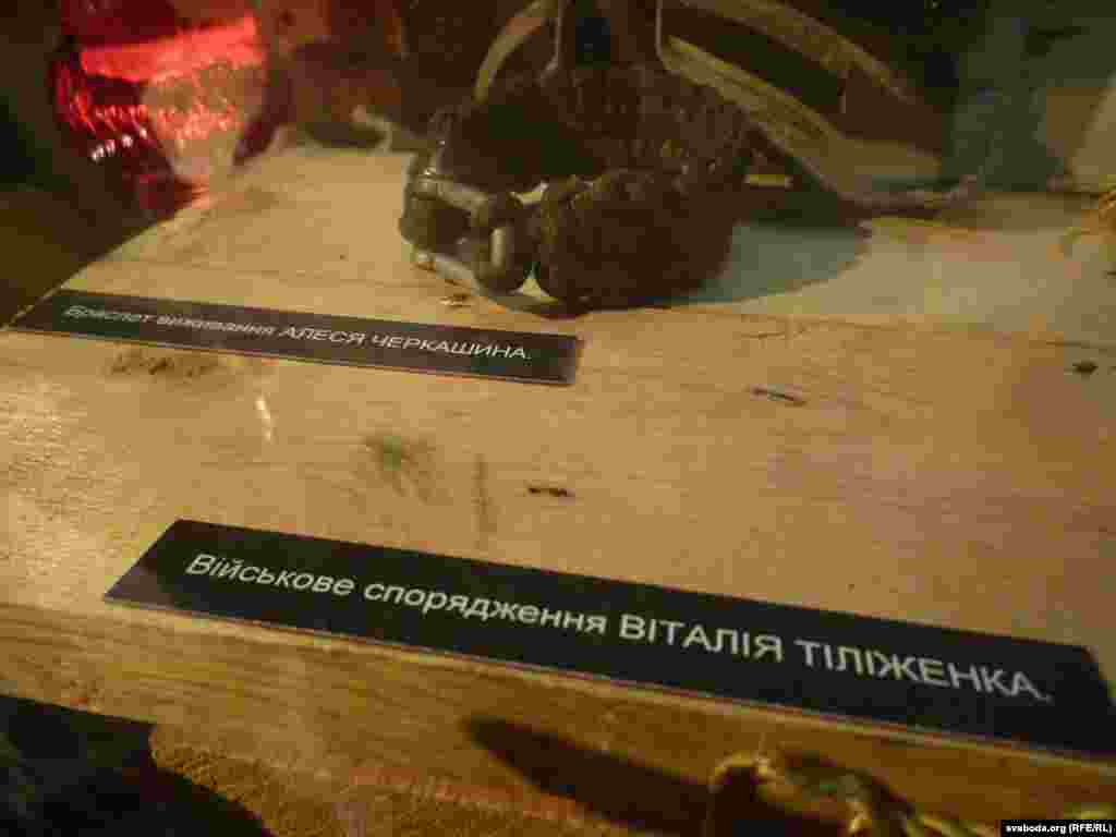 У экспазыцыі, прысьвечанай вайне на ўсходзе Ўкраіны, знаходзяцца рэчы загінулых жаўнэраў тактычнай групы «Беларусь», сярод якіх бронекамізэлька з крывёй Віталя Ціліжэнкі. Ёсьць тут і бел-чырвона-белы сьцяг, які лунаў над царквой вёскі Пяскі.