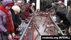 У чэргах па асьвечаную ваду — сотні гараджанаў. Ваду падвозяць сюды аўтацыстэрнамі. Спэцыялісты рэгіянальнай управы Міністэрства надзвычайных сытуацыяў змайстравалі на саборнай тэрыторыі адмысловыя вадаводы са шматлікімі кранамі. Многія гараджане з плястыкавым посудам стаяць у чарзе па сьвятую ваду з капліцы, дзе ёсьць свая сьвідравіна.