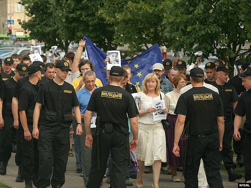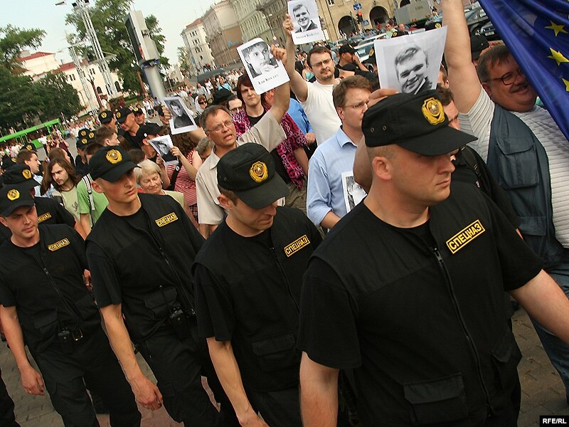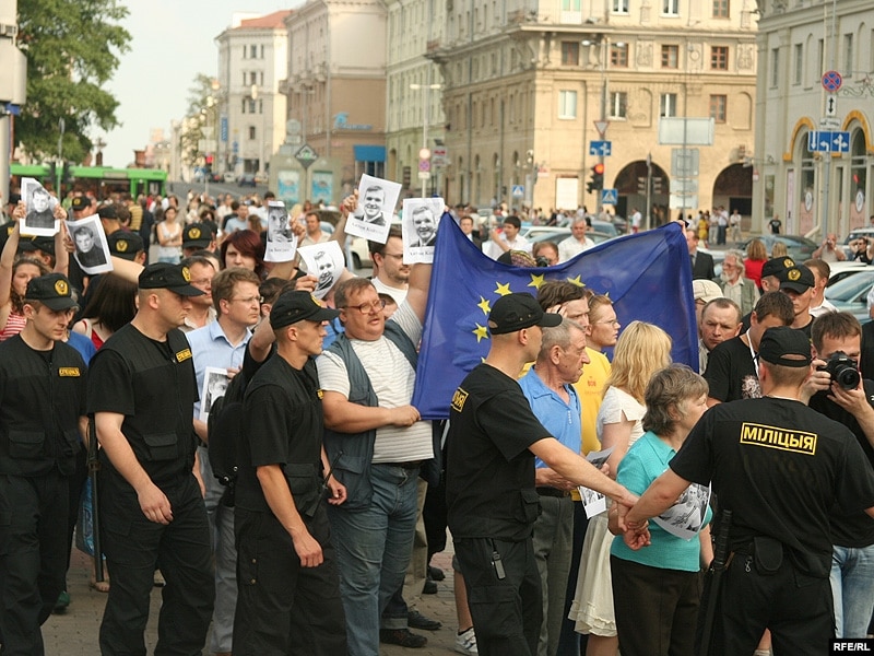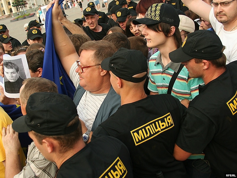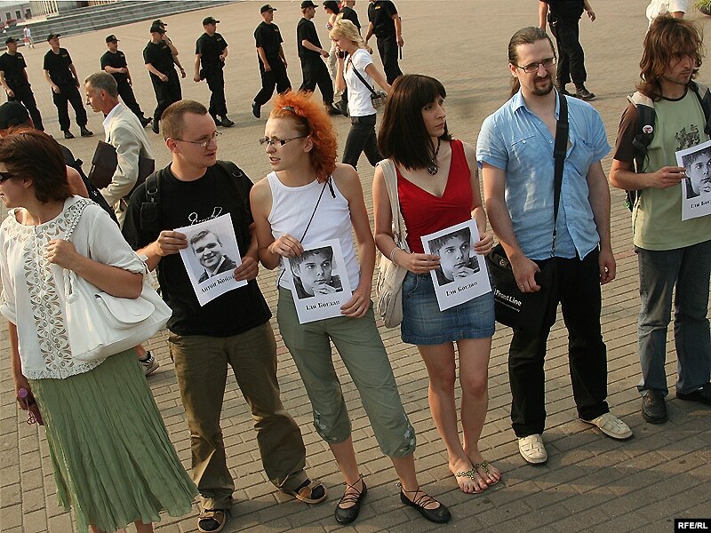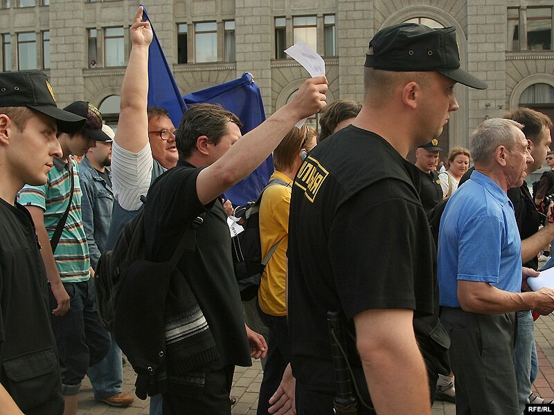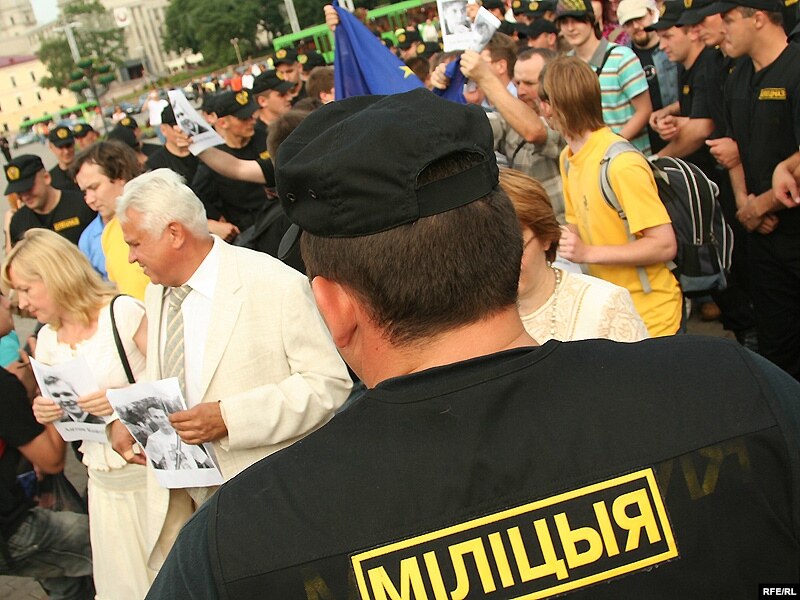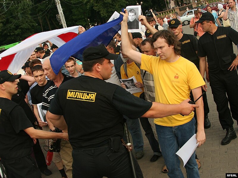 На Кастрычніцкай плошчы ў Менску была разагнаная акцыя з патрабаваньнем вызваліць актывістаў апазыцыі, арыштаваных пасьля выбуху 4 ліпеня.
