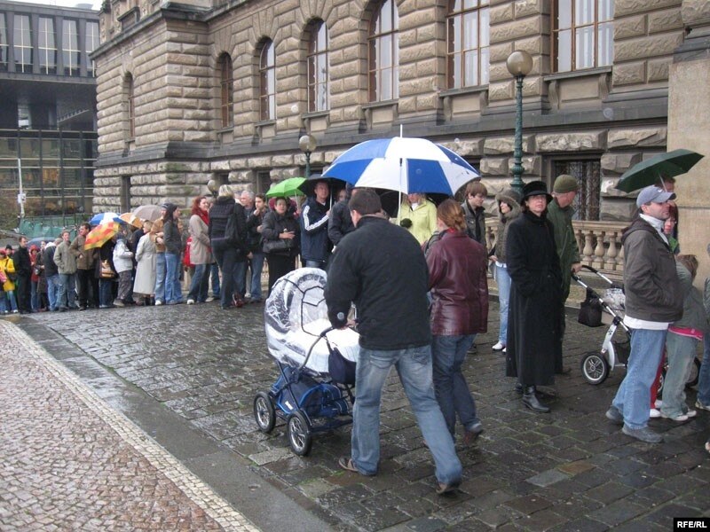 Ну ў самым цэнтры Прагі ўзьнікла нават чарга, незвычайная тым, што гэта была чарга ў музэй. Нацыянальны музэй Чэхіі да сёньняшняга сьвята прымеркаваў адкрыцьцё новай выставы, прысьвечанай 90 гадоваму юбілею Чэхаславаччыны. Сотні людзей прыйшлі да адкрыцьця, выкарыстоўваючы свой выхадны, каб пабачыць рэдкія дакумэнты і экспанаты. Так, спэцыяльна да гэтай выставы у Прагу быў прывезены адзін з арыгіналаў Мюнхенскай дамовы, падпісанай Гітлерам.