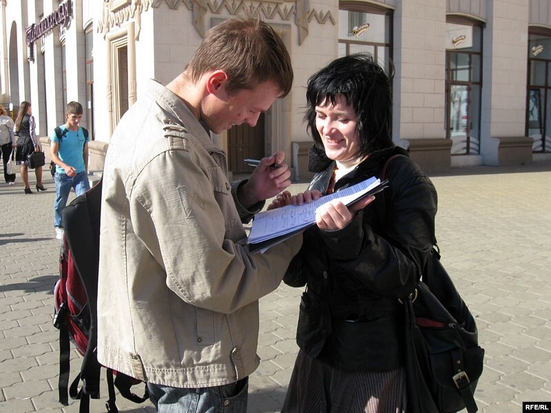 Намесьніца Зьмітра Дашкевіча Наста Палажанка таксама зьбірала подпісы мінакоў: