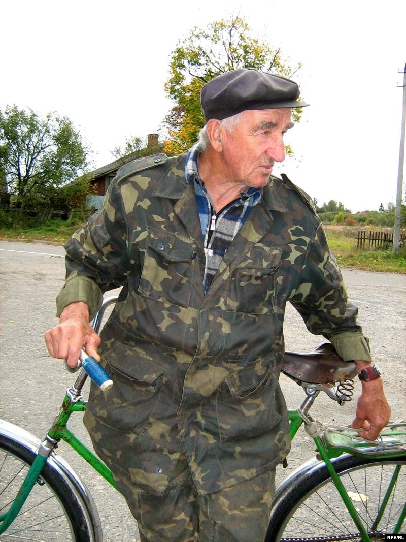 72-гадовы Аляксей Ярмоленка, найбольш жвавы й моцны мужчына ў вёсцы, кажа, што на людзей у пакінутых чарнобыльскіх паселішчах ужо мала хто зьвяртае ўвагу: