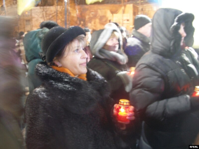 Людзі трымалі сьвечкі і маліліся разам з Юліяй Цімашэнкай.