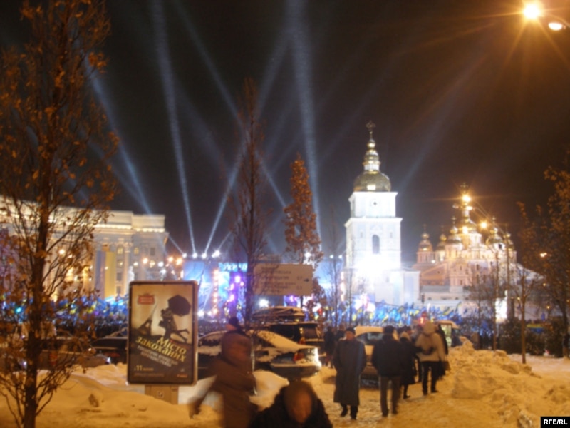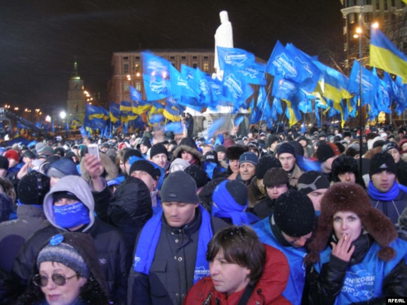 Прыхільнікі лідэра Партыі рэгіёнаў Віктара Януковіча сабраліся на Міхайлаўскай плошчы - тут адбыўся канцэрт эстрадных зорак.