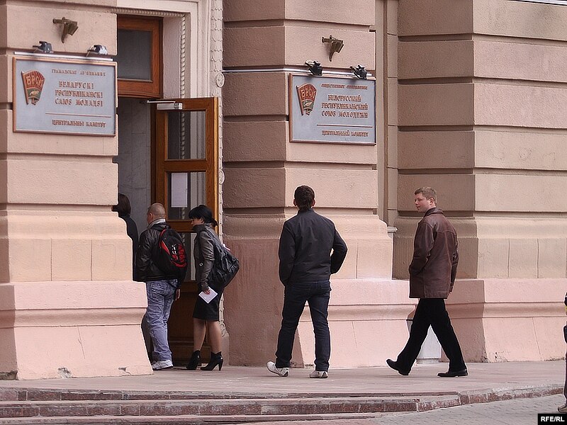 Маладафронтаўцы заходзяць у будынак БРСМ