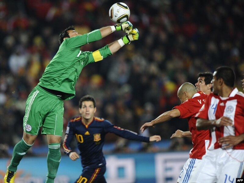 Парагвайскі брамнік Хуста Вільяр ліквідуе небясьпеку
