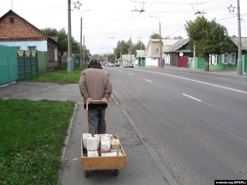 Спадарыня: «А ў мяне пэнсія малая, муж быў інвалідам, працаваў і памёр. А ўнука трэба карміць, за кватэру няма чым плаціць. Муж ваяваў-ваяваў, а мне і капейкі на старасьць не далі. Бацька з Машэравым разам у партызанах ваду таптаў…»