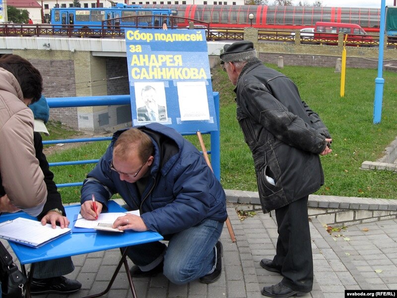 Адзін са зьбіральнікаў подпісаў падыходзіць і кажа, што сёньня ў іх быў цікавы выпадак: жанчына, якая раней не хацела браць удзел у выбарах, сёньня прыехала і паставіла свой подпіс.