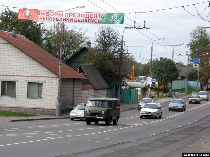 У Гомелі на пачатку вуліцы Барыкіна вісіць расьцяжка «19 сьнежня 2010 — Выбары Прэзыдэнта Рэспублікі Беларусь» (на здымку). Але жыхары левай часткі гэтай вуліцы наўрад ці вызначацца актыўнасьцю на выбарах.